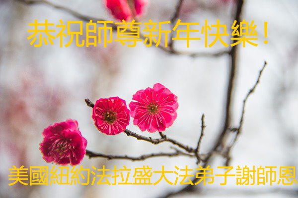 梅花绽放年来到 恭祝师尊过年好! 叩谢师尊慈悲度 助师正法在今朝 美国纽约上州大法弟子恭祝慈悲伟大的师尊新年快乐!