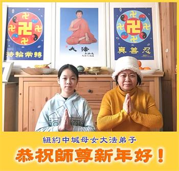 美国纽约大法弟子母女恭祝慈悲伟大的师尊过年好!