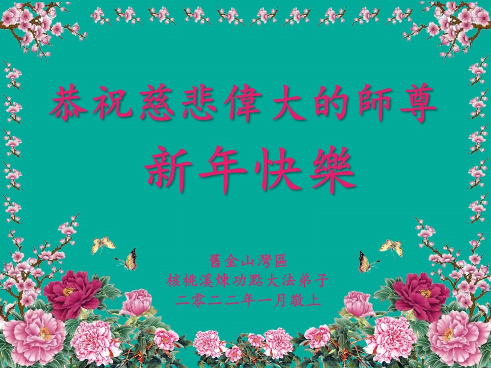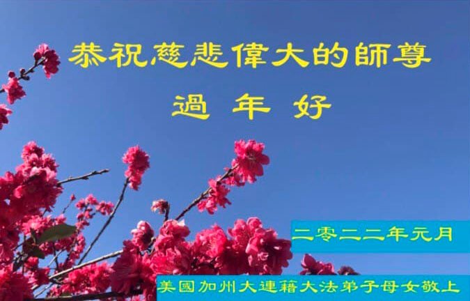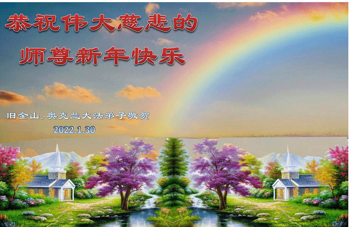 【明慧网二零二二年二月一日】美国西部旧金山、圣荷西、亚利桑那、洛杉矶、夏威夷、西雅图、加州奥克兰、圣地亚哥、波特兰、俄勒冈大法弟子给师尊拜年!恭祝师尊过年好! 美国加州圣荷西大法弟子恭祝慈悲伟大的师父过年好!感恩师父慈悲救度!