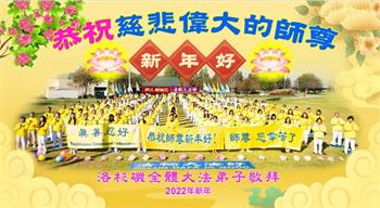美国洛杉矶全体大法弟子恭祝慈悲伟大的师尊新年好!