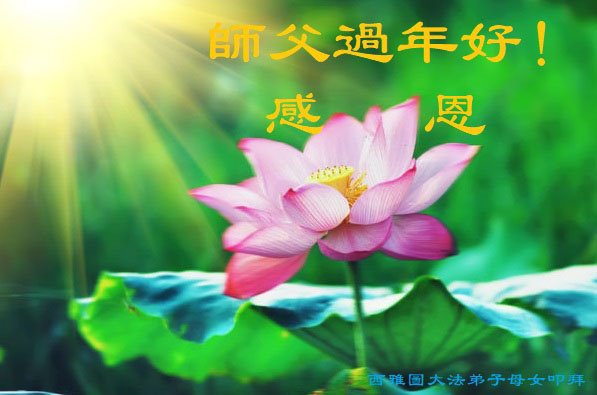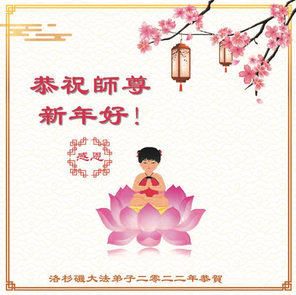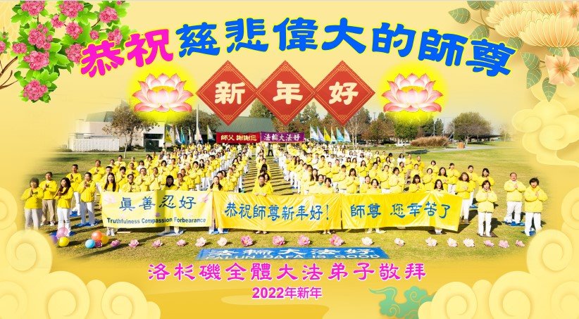 感恩师尊 洪传大法建新宇 慈悲苦度救众生 美国洛杉矶大法弟子全家恭祝慈悲伟大的师尊过年好!