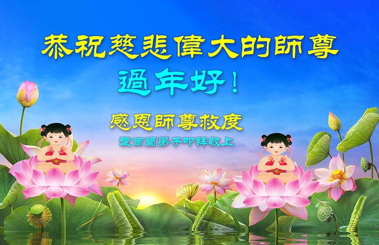衷心感谢师尊的救度之恩!因为师尊洪传大法,我在大法中得到重生。30年来师尊辛苦救度众生,千言万语无法表达对师尊的感恩,谢师恩、谢师恩、谢师恩!爱尔兰母女大法弟子敬上! 法国一大法弟子恭祝师尊新年快乐!