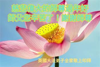 感恩师父的慈悲救度!弟子一定会真修,实修,做好三件事,随师把家还! 英国西伦敦大法弟子向师尊拜年!
