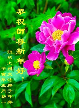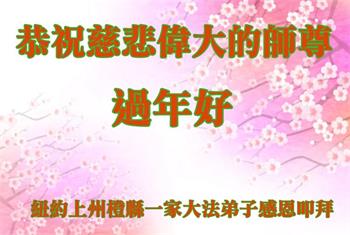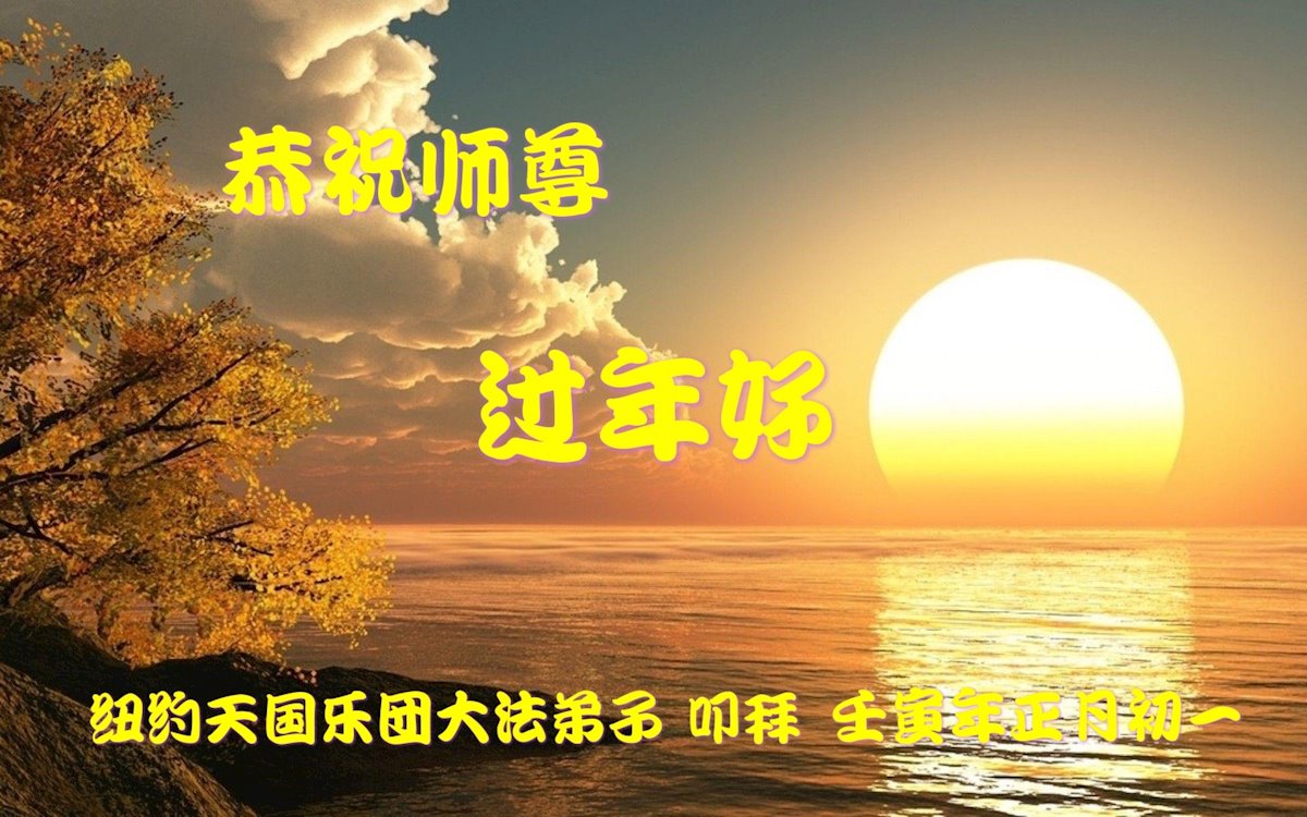 给师父拜年!恭祝慈悲伟大的师父新年快乐!我要修好自己,救度更多的众生,随师父法正人间,跟师父回归天国家园。纽约一大法弟子敬上! 美国纽约上州一大法弟子恭祝师尊新年快乐!