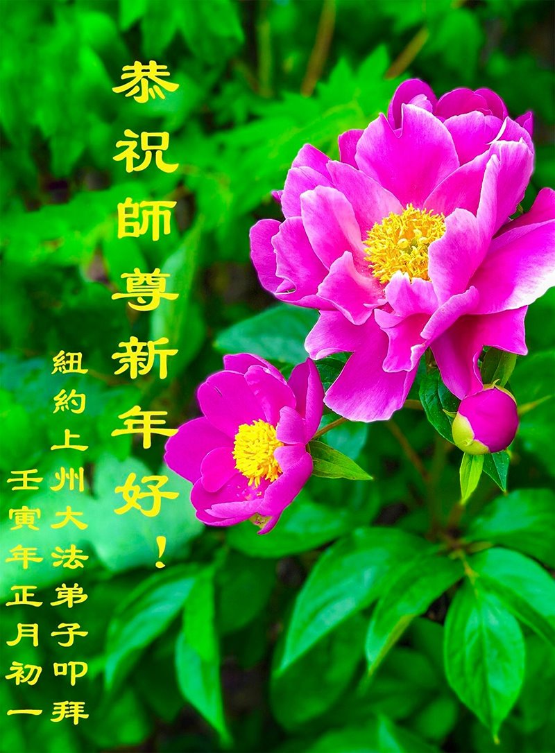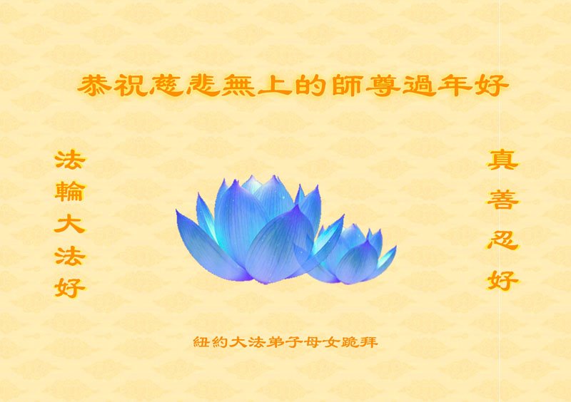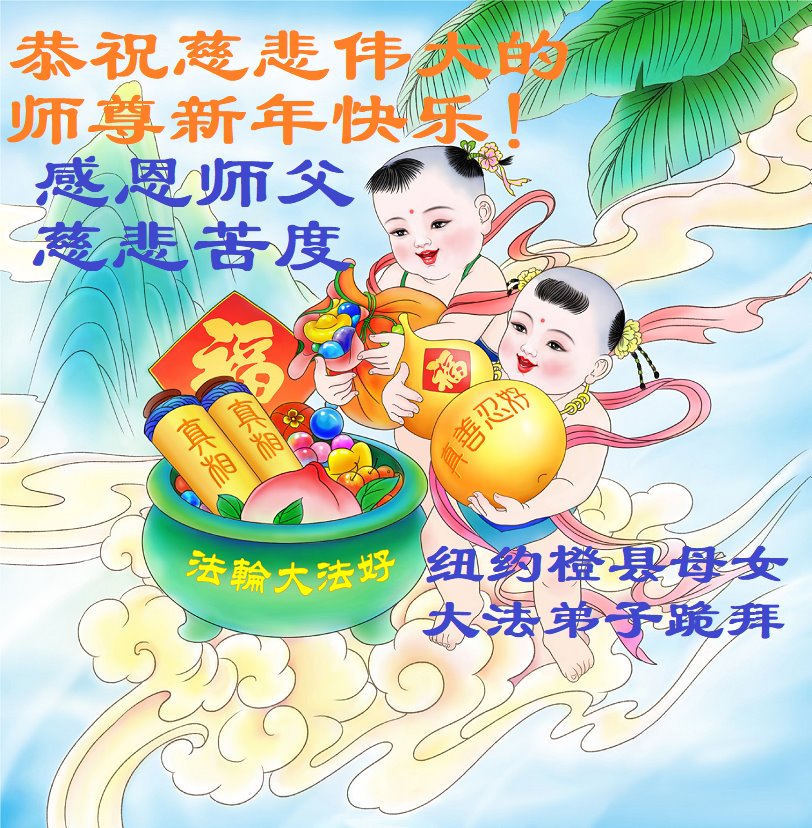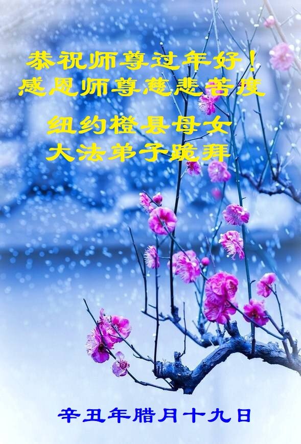 弟子母女无限感激师父的洪大慈悲救度之恩,虔诚地叩谢师父!祝师父过年好! 美国纽约与各地区十位大法弟子恭祝慈悲伟大的师尊过年好!