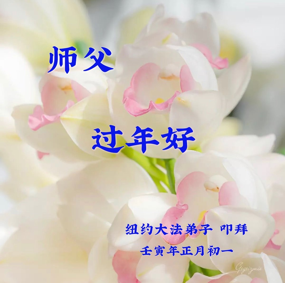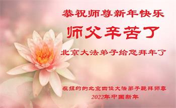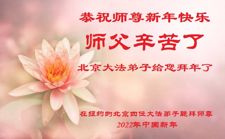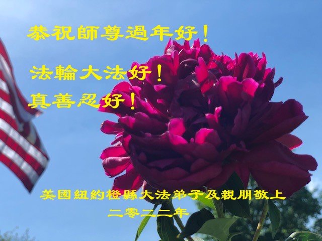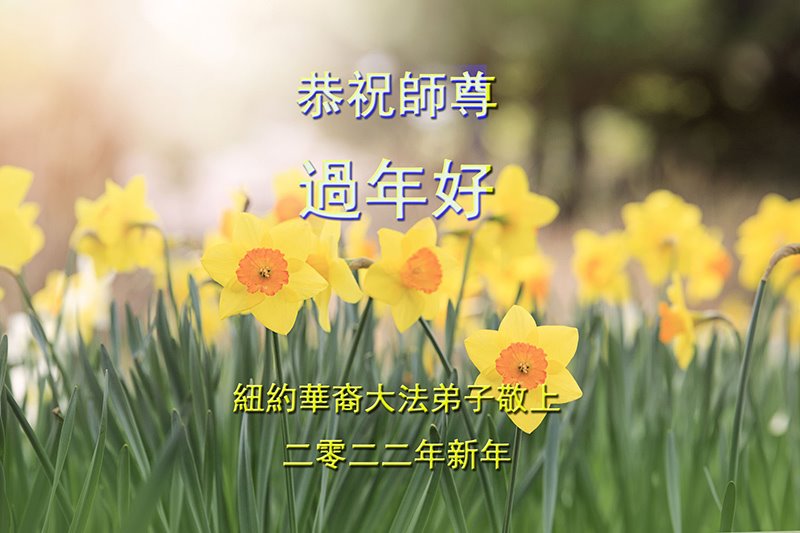 恭祝伟大的师尊新年快乐! 弟子无比感恩师尊慈悲苦度,做好三件事。助师正法,救度众生!勇猛精進! 纽约和各地区十位大法弟子叩谢师尊 二零二二年新年纽约华裔大法弟子恭祝师尊过年好!