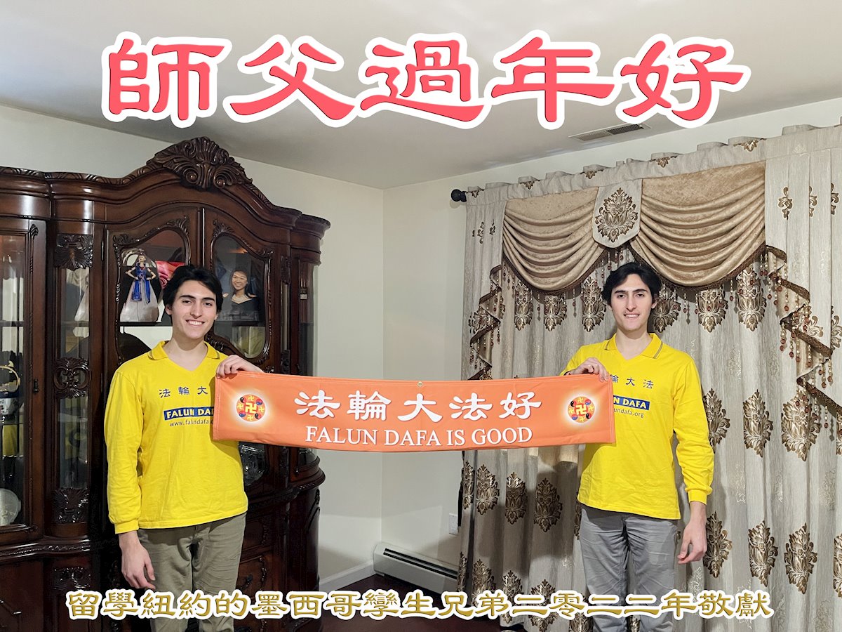 留学纽约的墨西哥孪生兄弟两位大法弟子恭祝伟大的师尊过年好!