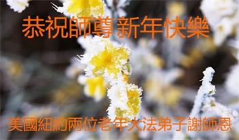 美国纽约两位老年大法弟子恭祝慈悲伟大的师尊新年快乐!