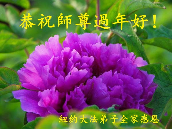 千言万语说不尽师父的洪恩,我们是如此超乎想象的幸运,能得到宇宙的根本大法——法轮大法。师父,我们一定在兑现誓约中不辱使命,不负您的救度之恩! 纽约全体大法弟子恭祝师父过年好!