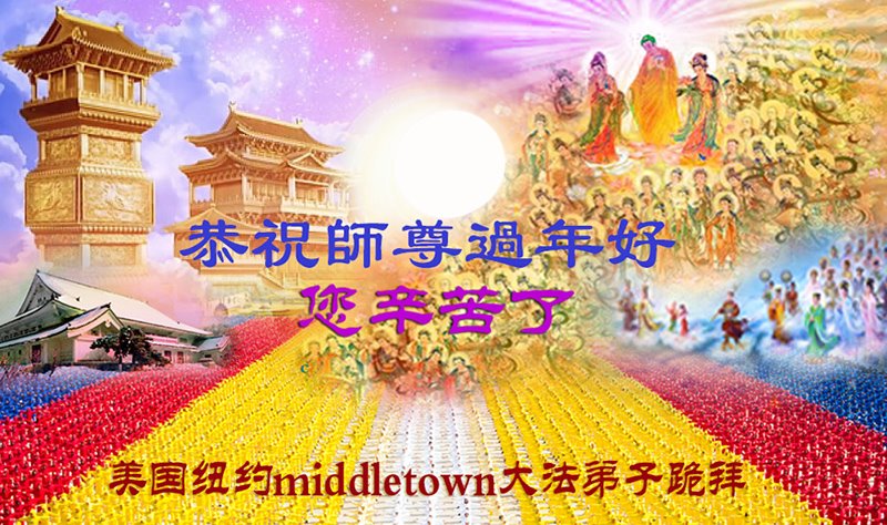 师尊您好!弟子在这里给您拜年了!师尊新年快乐!师尊您辛苦了!感恩师尊慈悲苦度。 长春在纽约的母女大法弟子叩拜! 2022年1月26日 美国纽约Middletown大法弟子恭祝师尊过年好!师尊辛苦了!