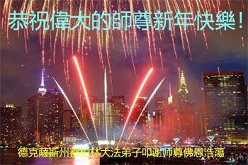 美国休士顿法轮大法小弟子恭祝伟大慈悲的师尊新年快乐!谢师恩!