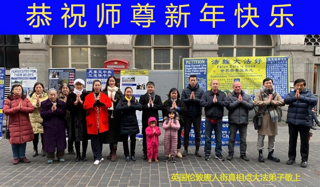 英国伦敦唐人街真相点大法弟子恭祝师尊新年快乐!