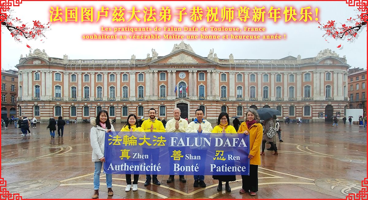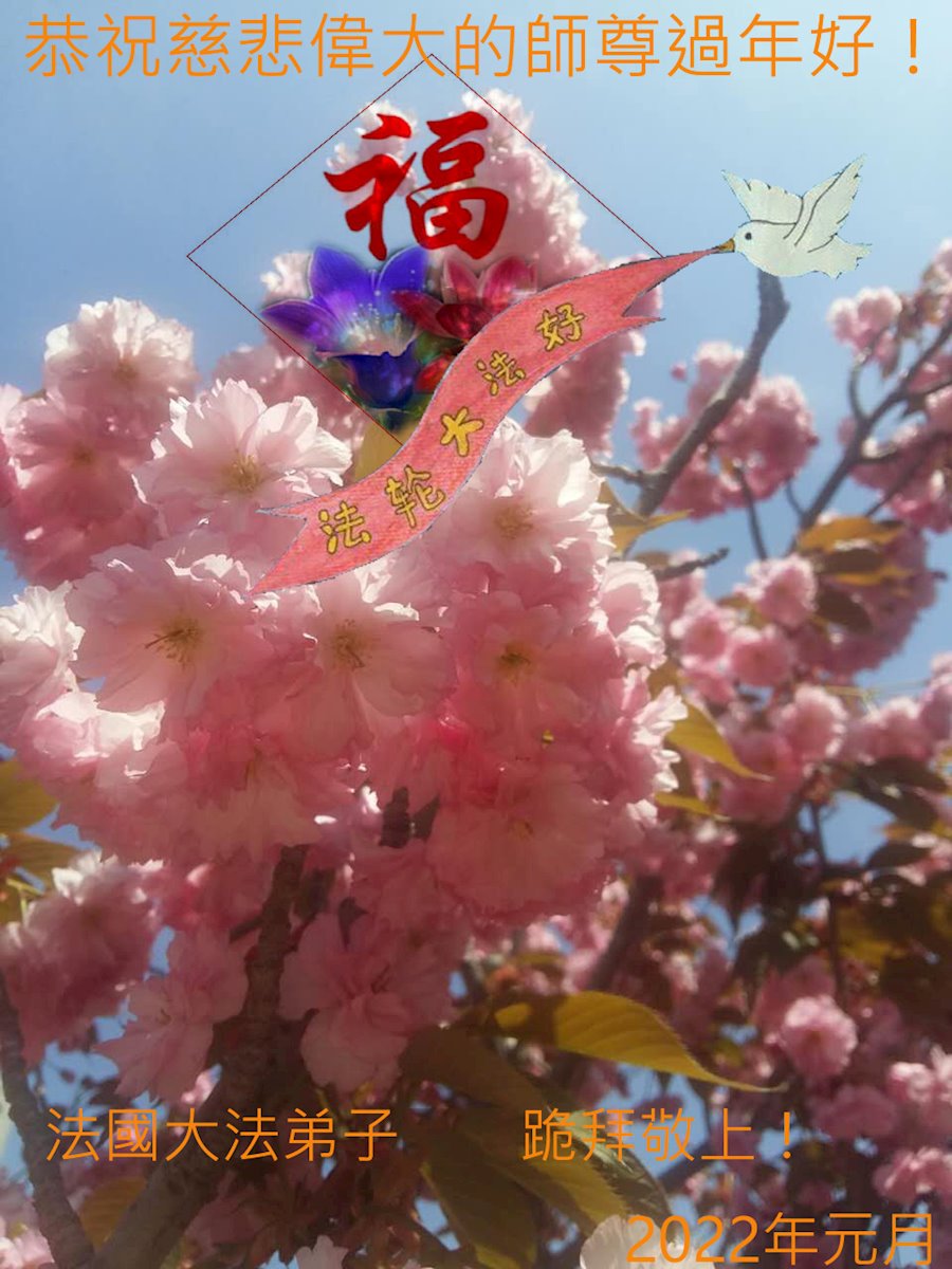 在这辞旧迎新之际,弟子给慈悲伟大的师尊合十拜年:恭祝师尊过年好! 感恩师尊的救度。感恩“法轮大法好 真善忍好”的神奇。牢记师尊教诲,学好法,修好自己,多救世人。 法国南部图卢兹大法弟子恭祝师尊新年快乐!