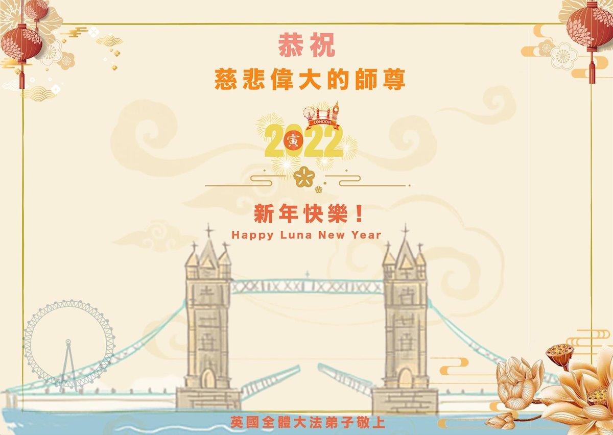 【明慧网二零二二年二月一日】 英国全体大法弟子恭祝慈悲伟大的师尊新年快乐!