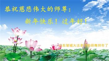 恭祝慈悲伟大的师尊新年快乐! 山东一大法弟子和全家恭祝师尊新年快乐!
