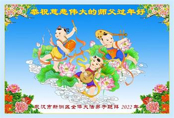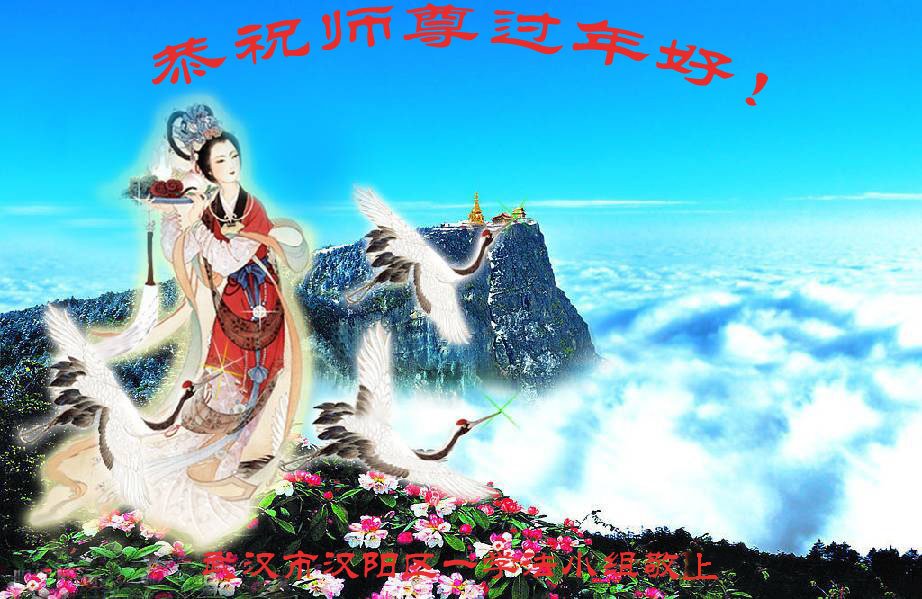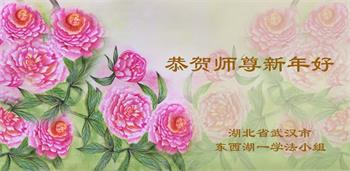 武汉市汉阳区大法弟子谢谢师尊慈悲苦度之恩,精進报师恩。 湖北省武汉市一学法小组大法弟子恭祝师尊过年好!