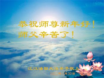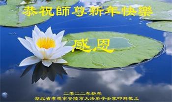 2022年新年到来之际,湖北省武汉市东西湖一学法小组的全体法轮功学员向师尊表达节日祝愿,恭祝师尊新年好!向师尊拜年! 湖北省江汉油田大法弟子恭祝师尊新年好!