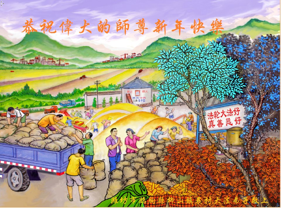 新年即将到了,河北省农村大法弟子想念师尊,向慈悲伟大的师尊问好:师尊您辛苦了!师尊为大法弟子、为所有众生操尽了心。弟子无法用语言表达师尊的救命洪恩,只有精進实修,多救众生,回报师尊救命洪恩。叩拜慈悲的师尊。 山东潍坊青州市农村全体大法弟子恭祝慈悲伟大的师尊新年快乐!