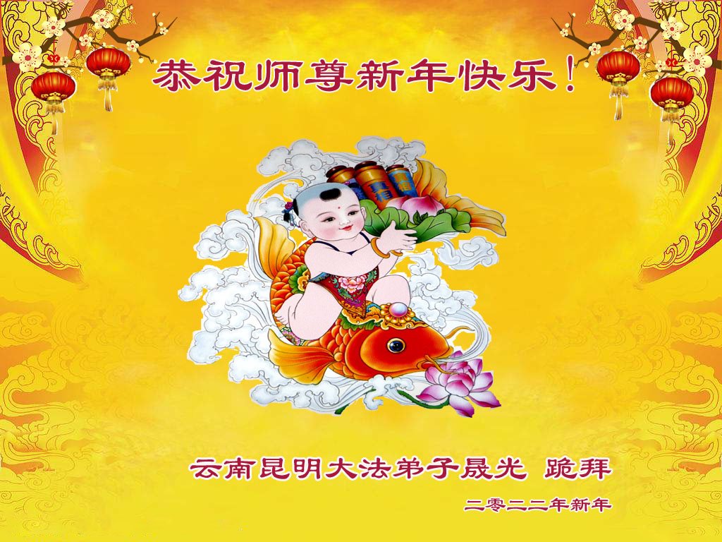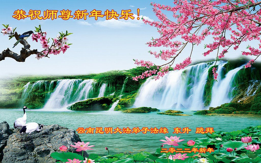 感谢师尊的慈悲救度!弟子精進实修报师恩。 云南昆明一大法弟子恭祝师尊新年快乐!