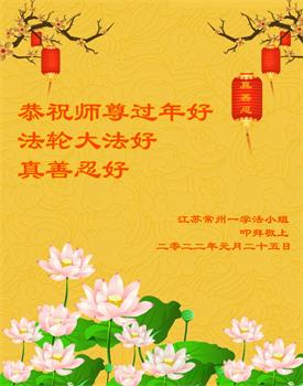 2022年中国新年快到了,江苏常州一学法小组三位青年大法弟子及三位大法小弟子恭祝师尊过年好!新的一年当不负师望,精進实修,多救人,惟愿师尊笑! 山东莱芜一学法小组大法弟子恭祝慈悲伟大的师尊新年好!