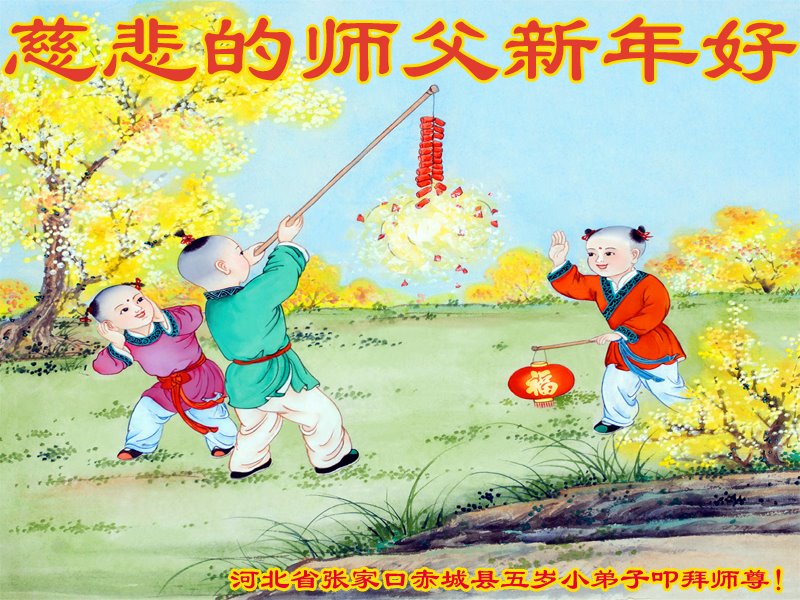 我们决心学好法,修好自己,多救众生,让师父多一些欣慰,少一些操劳。还有两位大法小弟子,一个六岁,一个四岁,也祝师父新年快乐!谢谢师尊慈悲救度。 黑龙江七台河桃山区大法小弟子恭祝恩师大年快乐!