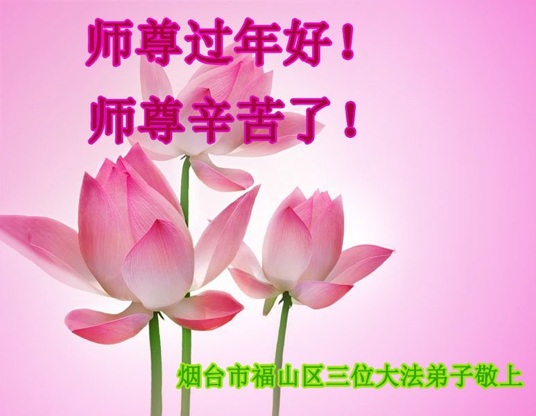 【明慧网二零二二年二月三日】 山东省烟台市福山区三位大法弟子恭祝师父过年好!