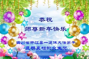 恭祝李老师新年快乐!我们永远支持大法,愿李老师早日回中土,人们欢迎您。 山东省烟台市芝罘区大法弟子恭祝师父新年快乐!