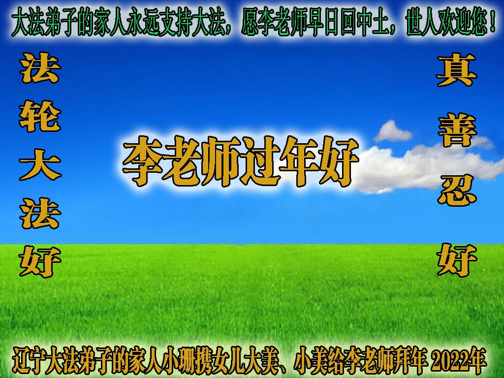 李大师新年好!我姑姑修炼大法身心健康,我和女儿也相信大法,经常诚念“法轮大法好!真善忍好!”托您的福,我们身体健康,一切都很顺利。恭祝李大师新年快乐! 贵阳市不修炼的常人 二零二二年一月二十一日 山东省德州市平原县一名三:退.学生祝李大师新年快乐!