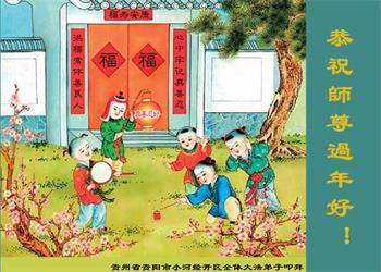 恭祝师尊新年好!新年快乐! 贵州贵阳中年女大法弟子敬上 贵州偏远山区在城里打工的大法弟子恭祝师父过年好!!