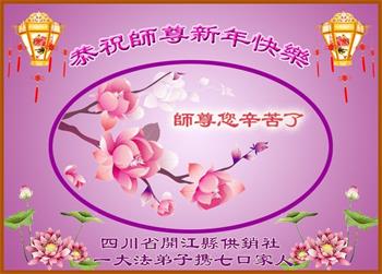 恭祝师尊新年快乐!师尊:您辛苦了! 四川省开江县供销社一大法弟子携7口家人敬上 黑龙江省地勘行业大法弟子恭祝师尊过年好!
