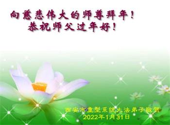 以无限感恩的心情给伟大的师尊拜年!敬祝师尊新年快乐! 在新的一年里,弟子要充分利用师尊用巨大的付出延续来的时间修好自己,谨遵师尊的教导多救人,做一个修炼有素的真修弟子,不辜负师尊的期望,兑现史前的誓约,助师正法,直到正法结束,圆满随师还。 齐鲁石化大法弟子 2022年1月25日 陕西省西安重型系统大法弟子恭祝师父过年好!