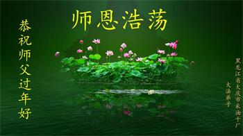我们在新的一年里要勇猛精進,严格要求自己,冲破一切阻碍。听师父的话,好好学法,多救众生,做好三件事,跟上正法進程,去掉执着心,回归步不放松,跟随师父把家还。 弟子叩谢师恩! 黑龙江大庆市肇州县采油十厂大法弟子恭祝师父过年好!