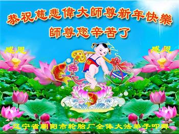 谢谢师尊多年来的慈悲看护,恭祝师尊新年快乐! 辽宁省朝阳市轮胎厂全体大法弟子恭祝慈悲伟大的师尊新年好!