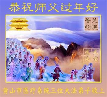 安徽黄山市医疗卫生系统三位大法弟子恭祝慈悲伟大的师父过年好!