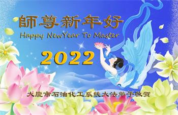 辽宁大连一个企业的退休大法弟子向伟大师父拜年: