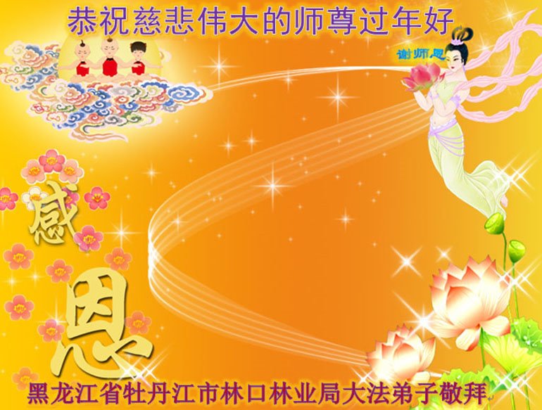 黑龙江省牡丹江市林口林业局大法弟子恭祝慈悲伟大的师尊过年好!