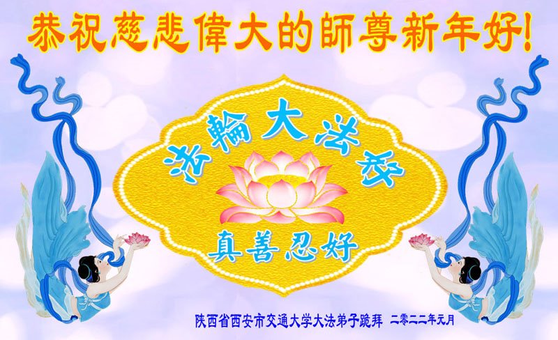 二零二二年中国新年到来之际,我们怀着无限感恩的心恭祝师父新年好! 大连高校大法弟子敬拜 陕西省西安市交通大学大法弟子恭祝慈悲伟大的师尊新年好!