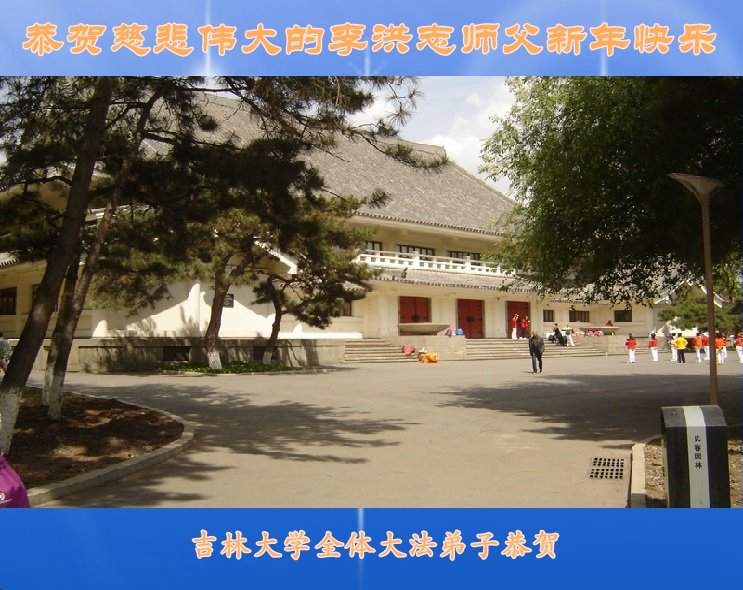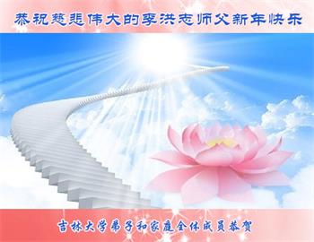 吉林大学弟子和家庭全体成员恭祝慈悲伟大的李洪志师父新年快乐! 吉林大学全体大法弟子恭祝慈悲伟大的李洪志师父新年快乐!