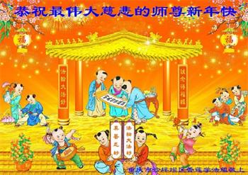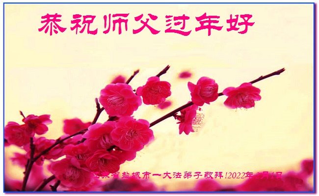 新年到来之际,大法弟子恭祝慈悲伟大的师尊新年快乐! 我们是东北大法弟子,修炼二十多年了。一路走来,在师尊的慈悲保护下,我们的学法小组一直坚持学法。无论邪恶怎样迫害干扰,我们就坚信师父,坚信大法,坚定正念,保证学法时间,做好三件事,学好法,讲真相救人。 无论正法时间时日长短,也无论严寒酷暑,我们一定保持修炼如初,初心不改!向内找,修好自己,快救人,多救人,紧跟师父正法進程前行,跟师父回家。 吉林省通化市通化县一学法组大法弟子敬上 美国纽约法拉盛大法弟子恭祝师父过年好! 给师尊拜年!
