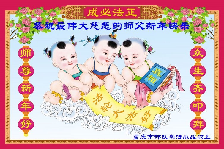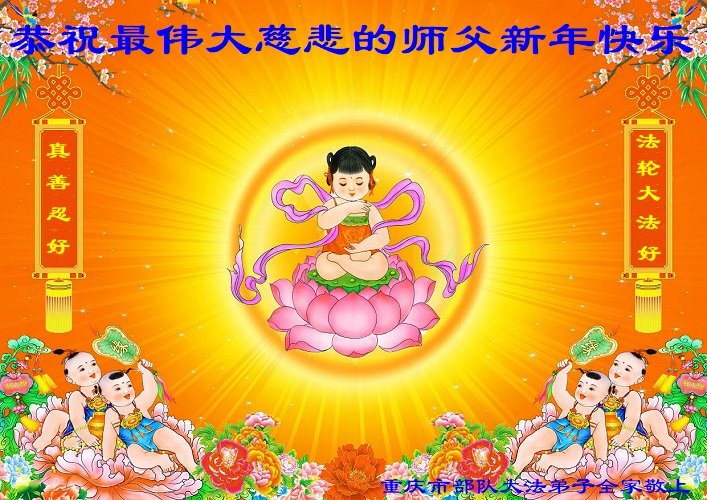 重庆市部队学法小组敬上 重庆市部队大法弟子全家恭祝最伟大慈悲的师父新年快乐!