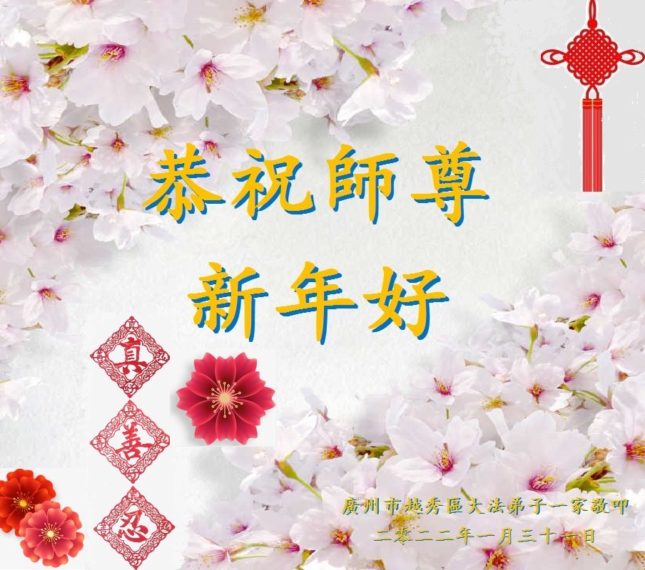 广州市越秀区大法弟子一家恭贺师尊新年好!