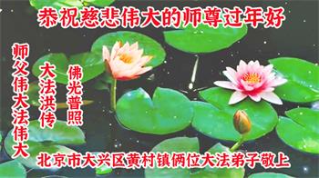 北京市大兴区黄村镇俩位大法弟子恭祝慈悲伟大的师尊过年好!