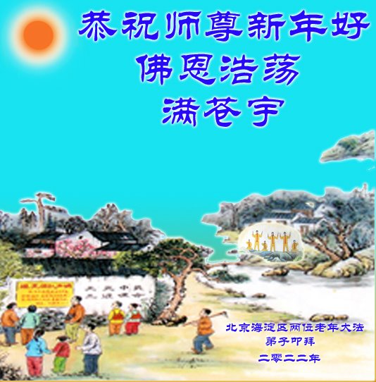 | 【明慧网二零二二年二月三日】(明慧网记者综合报道)法轮大法教诲弟子同化真、善、忍,性命双修,返本归真。大法洪传近三十年,弟子们迎来了中国传统新年。经历中共二十三年迫害、历经风雨,来自中国各地的花甲、古稀、耄耋、期颐之年的大法弟子们向慈悲的师尊拜年,师尊新年好! 黑龙江省一位一百零二岁的大法弟子说:“我之所以能健康高寿,幸福愉悦的生活,是因为受益于法轮大法的修炼。我每天听师尊讲法录音;每天诚念法轮大法好;每天按真、善、忍修炼自己,沐浴在法光中,得到伟大师尊的慈悲保护。想念着、盼望着师尊早日回国团聚。” 贵阳市一位九十四岁的大法弟子说:“弟子身体健康,独居,家人支持我修大法,共同抵制迫害。在师尊的慈悲保护下,弟子有惊无险的正念过关,弟子用健康的身体在单位证实大法,大家无不称赞大法的奇特功效。弟子会紧跟师父坚修到底。” 广东恩平市一大法弟子说:“我将奔八十岁了,走路生风,每次提交沉甸甸的三:退.名单,心里为得到大法救度的生命而欣慰。弟子会抓紧这最后宝贵的时间,修好自己,跟师父回家。” 盼师尊 念师千百春,今春又来临。 冬去必是春,春归万古新。 法徒携苍生,新春盼师尊。 昆明一老年学法小组大法弟子恭祝师尊过年好!北京海淀区两位老年大法弟子恭祝师尊新年好!弟子给您叩头了!弟子想念您!二十四年修炼,一路走来,不管是黑云压顶时的恐怖日夜,还是由于年龄的增长,转眼间我们已年过花甲,我们救人的脚步一直没有停,平稳、健康的做着三件事。其中有太多的感触,无限的感恩师尊。没有师父的护佑,我们是很难走过来的,师父的浩荡洪恩无以回报,唯有修好自己,做好三件事,让师尊放心! 叩拜师尊! 兰州市城关区十一位老年大法弟子恭祝慈悲伟大的师父新年好!兰州市城关区十一位老年大法弟子一起跪拜给师父拜年!在新年来临之际,弟子们一定精進实修,学好法,比学比修,助师正法,做好三件事,随师尊回家。 黑龙江省伊春市金林区一位八十六岁的大法弟子恭祝慈悲伟大的师尊大年快乐!师尊您好!弟子怀着感恩之心,恭祝师尊大年快乐!师尊是您给了我健康的身体,给了我生命全新的一切!弟子发自肺腑说:法轮大法好!真、善、忍好! 祝师尊永远快乐! 北京海淀紫竹院81岁大法弟子恭祝慈悲伟大的师尊新年快乐!慈悲伟大的师尊您好!您辛苦了!感恩师尊慈悲苦度! 我是北京紫竹院老年大法弟子,今年已经八十多岁了,感恩师尊的悉心保护,在师尊的加持下,走过了风风雨雨的修炼路,在末世之末,幸遇师尊洪传大法,感恩师尊把我从地狱中捞起、洗净,弟子叩谢浩荡洪恩,千言万语无法表达心中的感恩! 我要以法为师,精進实修,坚信师尊,坚修大法,在法中纯净自己的一思一念,归正自己的一言一行,放下所有的人心和执着,整体配合、共同提高,多学法、学好法;多救人、快救人,助师正法,救度众生,做合格的大法弟子,兑现史前誓约,跟师尊回到自己的天国家园! 感恩与师尊同在!感恩与大法同在!弟子遥祝师尊新年快乐!盼望师尊早日回大陆与弟子团聚! 北京海淀紫竹院81岁大法弟子叩拜 二零二二年一月十二日 黑龙江大庆市一名百岁大法弟子恭祝伟大师尊过年好!我今年一百零二岁,四世同堂,母慈子孝,全家和睦。我之所以能健康高寿,幸福愉悦的生活,是因为受益于法轮大法的修炼。我每天听师尊讲法录音;每天诚念:法轮大法好;每天按“真、善、忍”修炼自己;每天沐浴在法光中;每天得到伟大师尊的慈悲保护;每天想念着、盼望着师尊早日回来团聚。 我无比幸运与自豪能成为师尊的弟子;无比珍惜师尊给我延续来的生命;无比感恩师尊的慈悲救度!我要全身心的修好自己,救度众生,跟师尊回家。谢师恩! 黑龙江大庆市一位百岁大法弟子 敬拜 二零二二年一月十六日 广东恩平市一大法弟子携家人恭祝师父新年快乐!感恩师父救度!弟子随师父修炼也二十多年了,风雨中有慈悲的师父导航,感恩师尊对弟子的一路保护,感恩师父对弟子和家人的无限付出和承受;感恩师父点明弟子要精進实修,明了弟子来世间肩负着维护法、证实法、助师正法、救度众生的使命。 我将奔八十岁了,走路生风,每次提交沉甸甸的三:退.名单,心里为得到大法救度的生命而欣慰。弟子会抓紧这最后宝贵的时间,以法为师,要不断总结自己的不足,改变后天形成的观念,不断纯净自己,严格要求自己,修好自己,尽力救人,做好三件事,走好走正修炼的路,跟师父回家。 南京市一老龄大法弟子恭祝师父过年好!师父辛苦了!我已是八十岁。没有上过学,但我可以通读所有大法书籍,每星期可以坚持三至五次乘公交车去郊外集镇讲真相劝三:退.,每天坚持做好三件事。这都是师父给的智慧与好身体。弟子一定走好最后的路,跟师父回家。 河北省保定市易县一老年大法弟子恭祝师父新春快乐!师父您好!师父您辛苦了!今年的冬天虽然寒冷,可弟子的心却很温暖。因为我深信:冬天的寒冷阻挡不住大法弟子前行的脚步,我要在春天到来之前救下更多的世人。 二十多年过去了,在修炼的路上,师父一直牵着弟子的手。弟子在慈悲伟大的师父保护下,一路走到了今天。弟子无限感恩师父的慈悲苦度! 在二零二二年新春即将来临之际,弟子恭祝师尊新春快乐!在新的一年里,弟子唯有精進实修,做好三件事,走好最后的路,不辜负师父的慈悲苦度。保定市易县