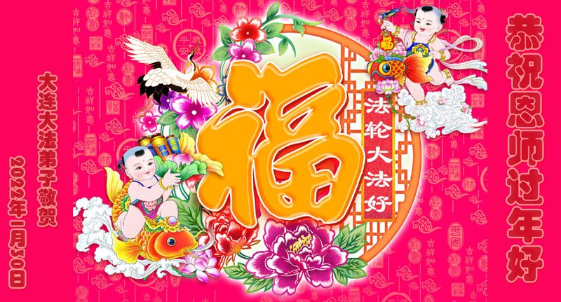 我看过大法书,相信大法好,也受益了。过年了,给慈悲伟大的师父拜年: 师父新年好!愿在新年里大法得到更广泛的洪扬。 大连市明真相世人敬拜 辽宁省大连三人讲真相小组叩拜师尊过年好!