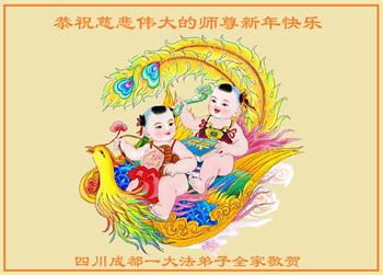四川成都一大法弟子全家恭祝师尊新年快乐!