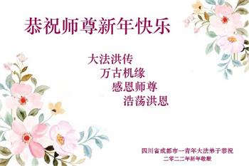 【明慧网二零二二年二月三日】 四川省成都西门片区一讲真相小组全体大法弟子恭祝师尊新年快乐!