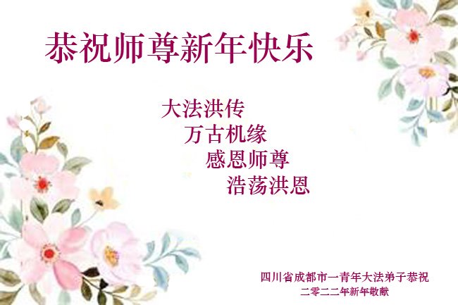 2022年新年之际,成都大法弟子在此恭祝师父新年好! 感恩师父的救度,感恩师父的慈悲,弟子唯有修炼如初,才能不辜负师父的洪恩浩荡!合十 成都大法弟子叩拜 2022年1月31日 |