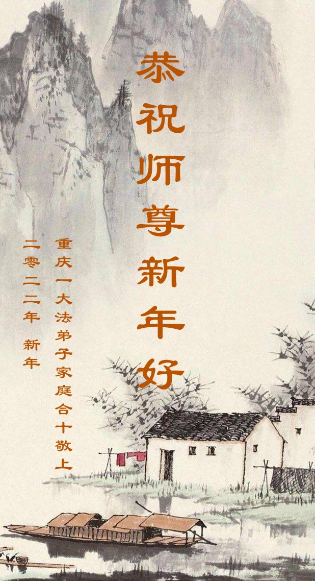 恭祝伟大慈悲的师尊新年好!感谢师尊的慈悲苦度,师尊辛苦了! 弟子们无以回报,只有坚定信师信法、修好自己、做好三件事,跟师尊回家。 重庆市江北区南桥寺七位大法弟子敬上 2022年1月24日 重庆市渝北区一大法弟子携全家恭祝师尊新年快乐!