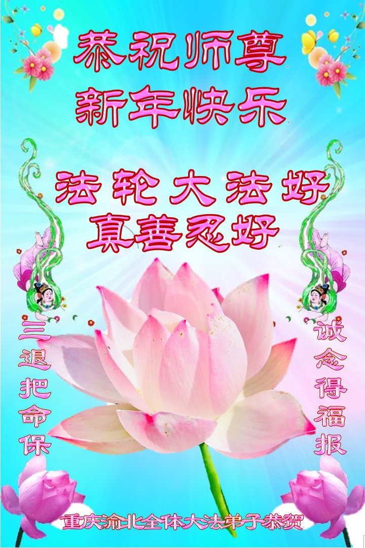 感谢师父的慈悲救度,在新的一年里勇猛精進,多学法,学好法,完成历史使命。叩拜师父! 大陆重庆市渝北全体大法弟子恭祝伟大的师尊新年快乐!