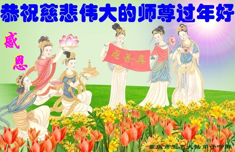 谢谢师父!祝师父全家新年快乐! 重庆市长寿区一夫妻大法弟子恭祝慈悲伟大的师尊过年好!